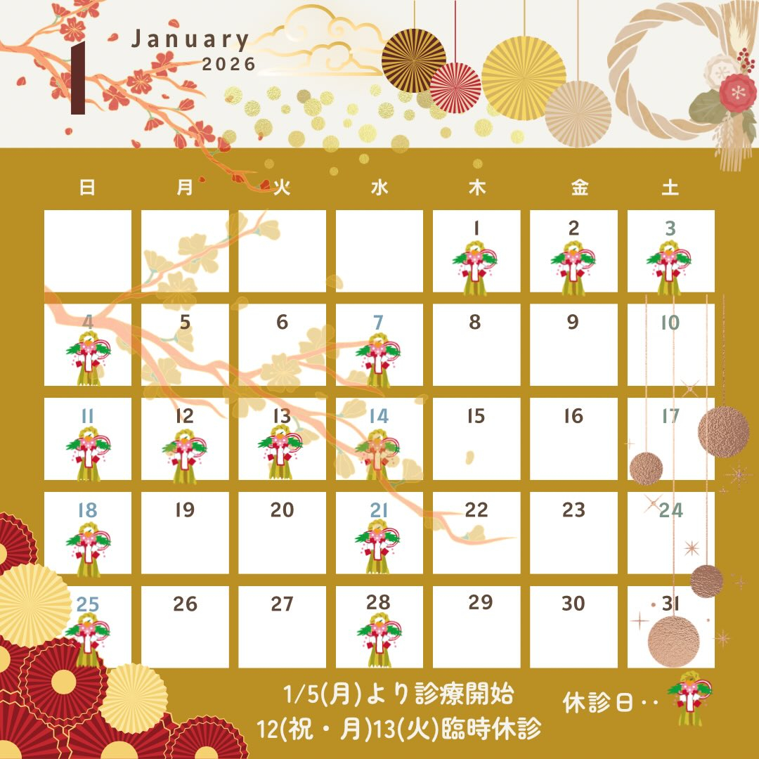 遅くなりましたが、1月の診療カレンダーです🗓