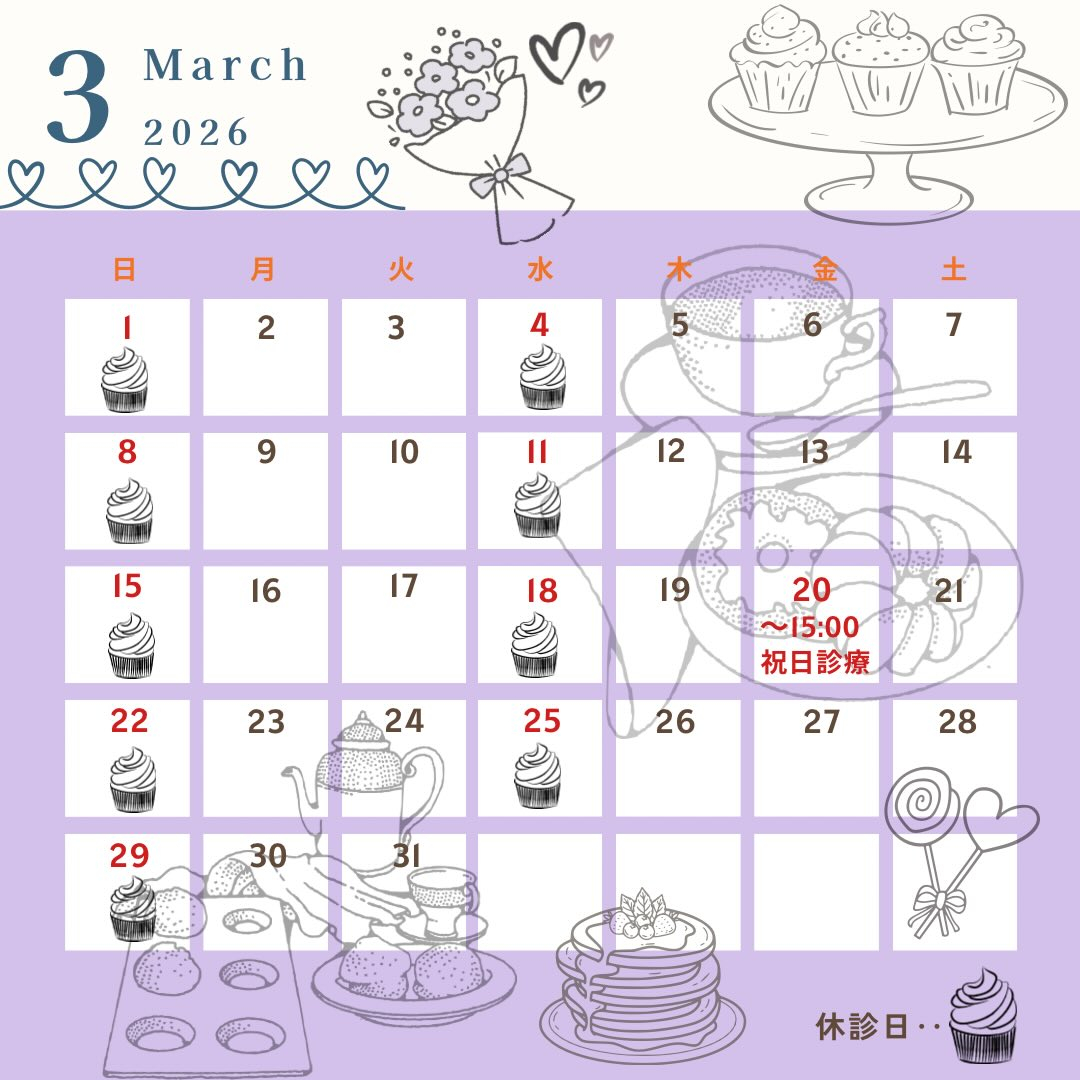 3月の診療カレンダーです🗓️